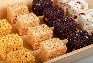选糯米→蒸米→阴米→油酥米→熬糖→拌糖→开盆→包装→成品...